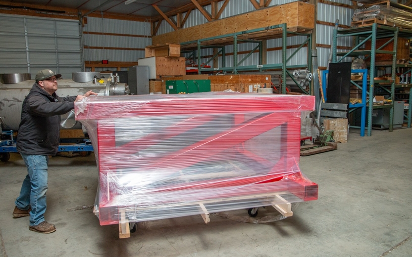 “The size and magnitude of this project were challenging,” said Terry Neiss, CLASSE machine shop supervisor. “It required multiple machine shops and some assembly in the lab. The raft itself is carbon steel and extremely heavy. The chambers mounted to it are aluminum and very large, with a vast number of parts working together.”