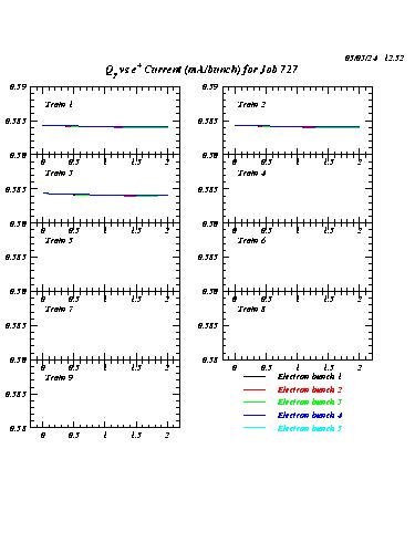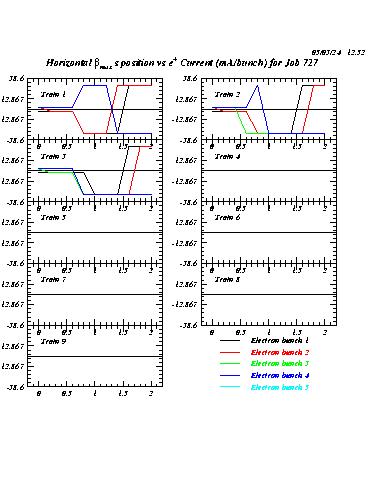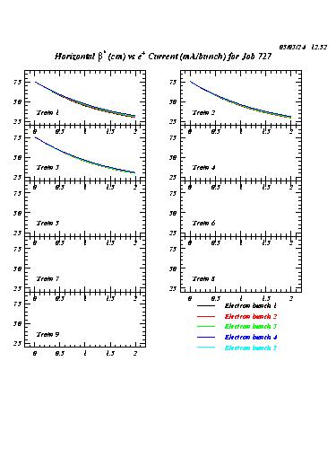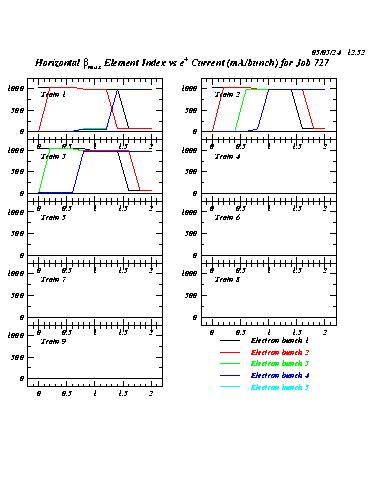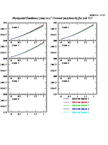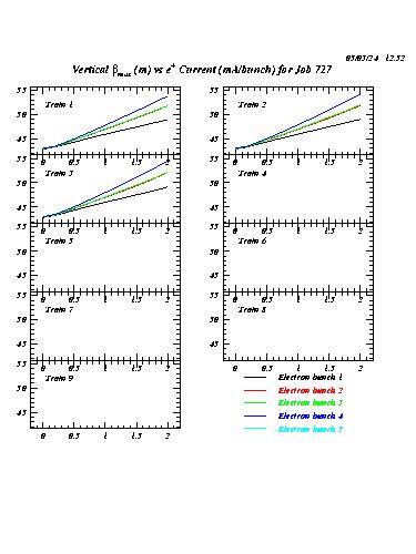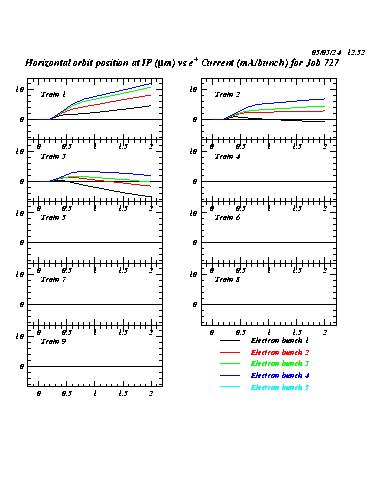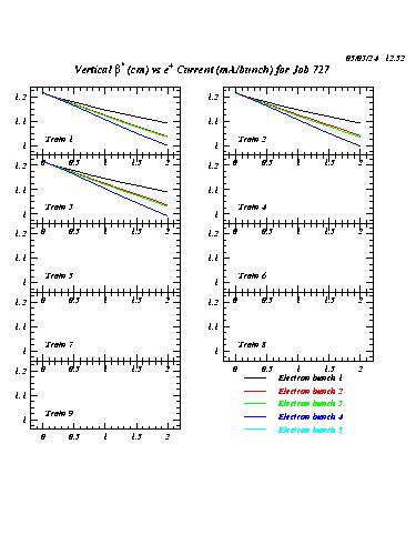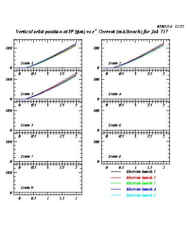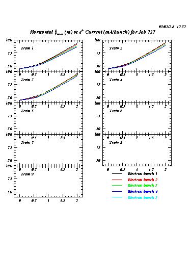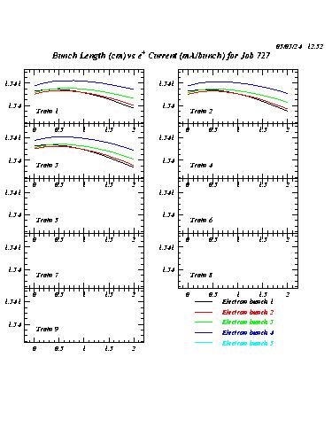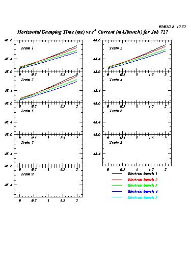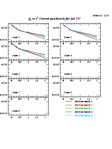 9x4 positron bunches, uniformly filled. Design pretzel. Tunes set to 0.518/0.584 and held constant independent of positron bunch current. Sync tune 35 kHz.