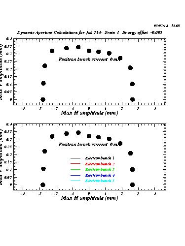 9x4 positron bunches, uniformly filled. Design pretzel. Tunes set to 0.518/0.584 and held constant independent of positron bunch current. Sync tune 35 kHz.