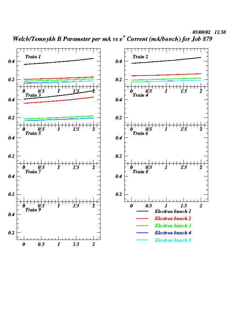 1.9 GeV lattice now in use. 8x5 positron bunches, uniformly filled. Design pretzel. Tunes set to design and held constant independent of positron bunch current. Sync tune 35 kHz.