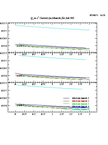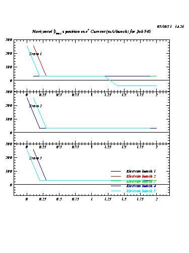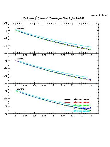 2.130 GeV lattice in use during September, 2005, replaced by 4260_092605_v1. 9x5 bunch configuration with maximum 2 mA/postron bunch. The BBI at the IP is turned on in this calculation.