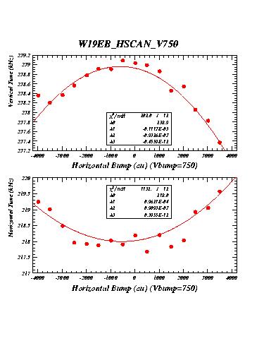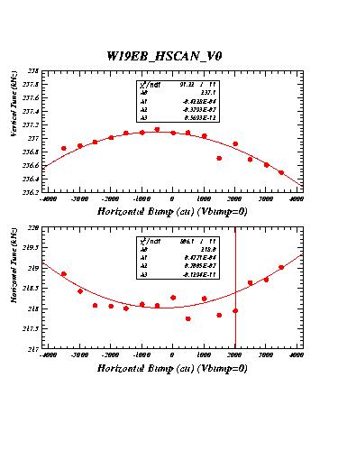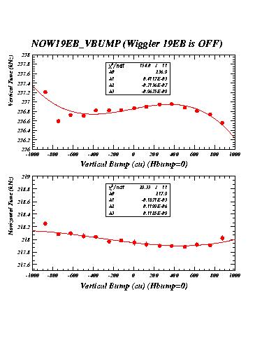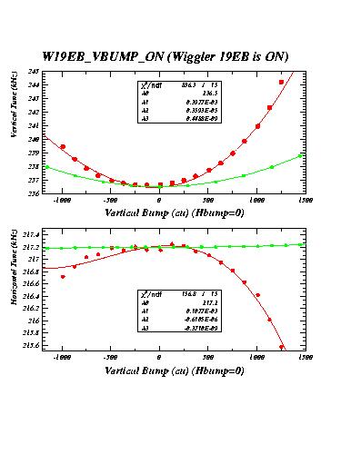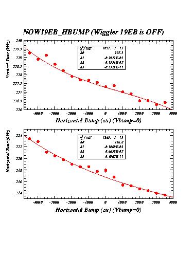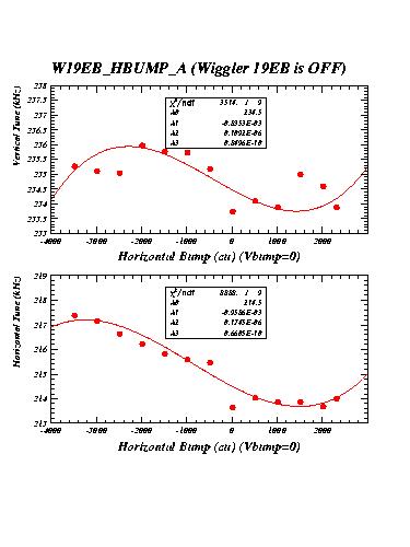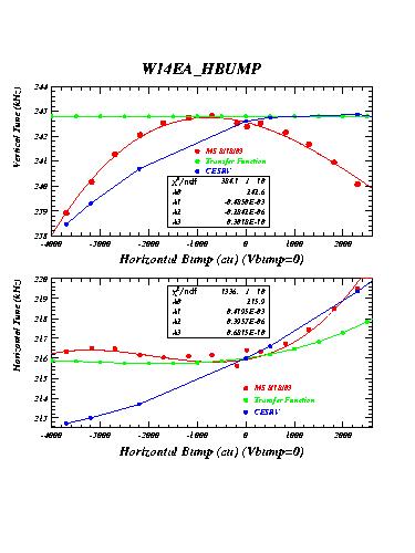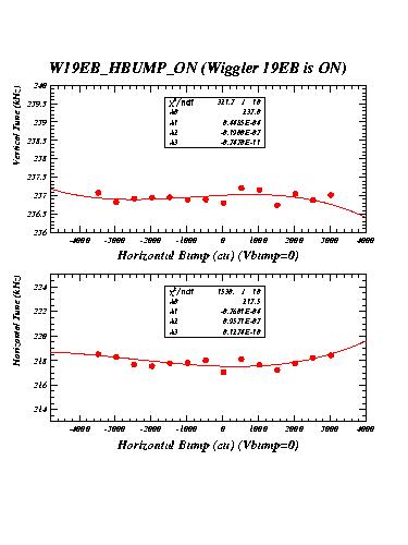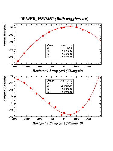 The measurements labelled "14EA" were taken with wiggler 14EA (WIG1_14E in CESRV, Serial Nr 2) excited to 21 kG. The measurements labelled "14EB" were taken with both wigglers 14EA and 14EB excited to 21 kG with the same polarity. Measurements labelled "19EB_HBUMP_A" were recorded with the two wigglers 14EB and 14EA at 21kG, but wiggler 19EB off. They serve as reference for the succeeding measurements with 19EB excited.