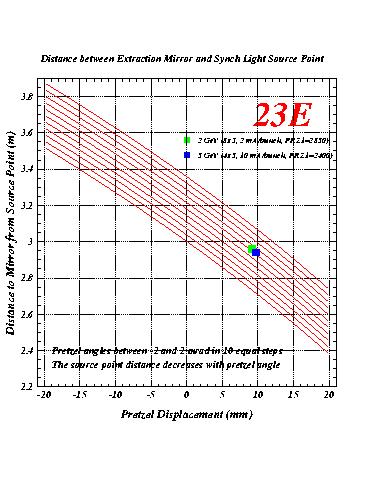 Pretzel Dependence of Synch Light Source Point and Angle at Mirror