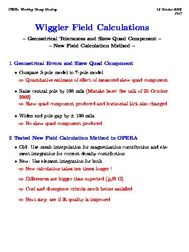 Comparison of curl and divergence. Calculations of divergence and curl using the new table show Maxwell's equations to be satisfied with factor 4-5 better accuracy than in the old table. Since the new method needs no mesh in the region where the field is calculated, this method may allow calculation of fields from geometrical errors for the 7-pole model, since an 8/8 model is smaller because one doesn't need the mesh in the beampipe region.