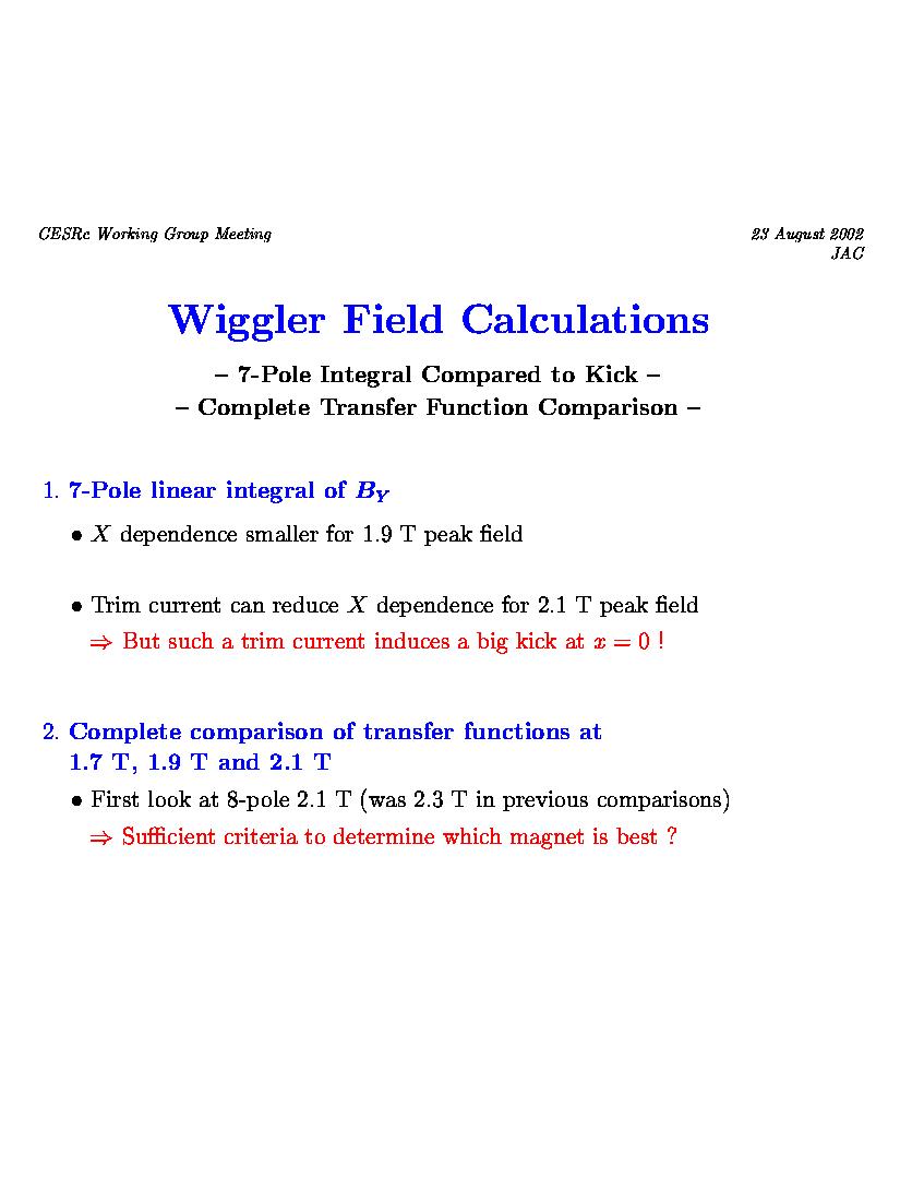 7-, 8-Pole Transfer Function Comparisons, including new 2.1 T 8-pole field