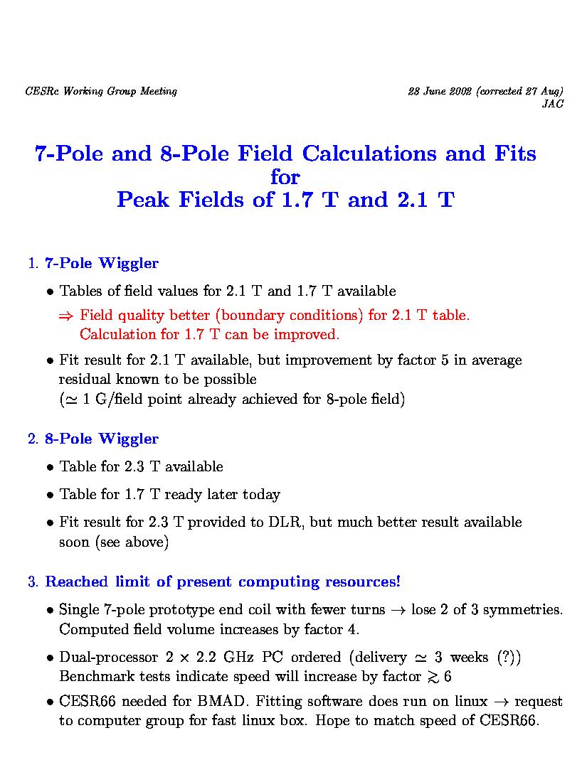 7-Pole and 8-Pole Wiggler Field Calculations and Fits
