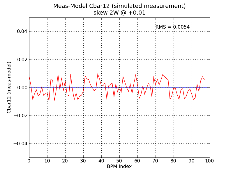 Recall that we normally correct coupling to less than 1%. Repeat for a lattice with sk_q02w @ 0.01, and look at RMS ('measured' - model) cbar12: